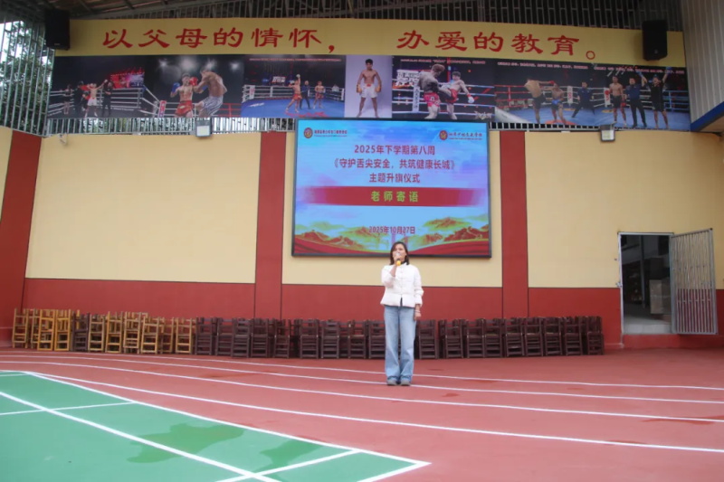 鈴聲劃破清晨的寧靜,晨光熹微的操場上,同學(xué)們身著整齊的校服,迅速列隊(duì)站好,挺拔的身姿如同初升的白楊,目光中滿是朝氣與莊重。當(dāng)激昂的《中華人民共和國國歌》奏響,鮮紅的五星紅旗在全體師生肅穆的注目禮中緩緩升起,2025 下學(xué)期第八周以《守護(hù)舌尖安全,共筑健康長城》為主題的升旗儀式,就此拉開了莊嚴(yán)的序幕。