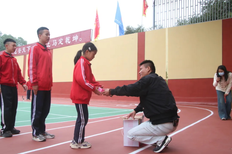 在儀式的最后,他親自走到表現(xiàn)優(yōu)秀的班級(jí)與學(xué)生代表面前,將包裝完好、印有清晰合格標(biāo)識(shí)的零食遞到同學(xué)們手中,笑著說:“希望大家既能養(yǎng)成健康的習(xí)慣,也能保持積極向上的勁頭,繼續(xù)加油!” 接過零食的同學(xué)們臉上滿是喜悅,紛紛點(diǎn)頭回應(yīng),操場上也洋溢起溫馨而熱烈的氛圍。