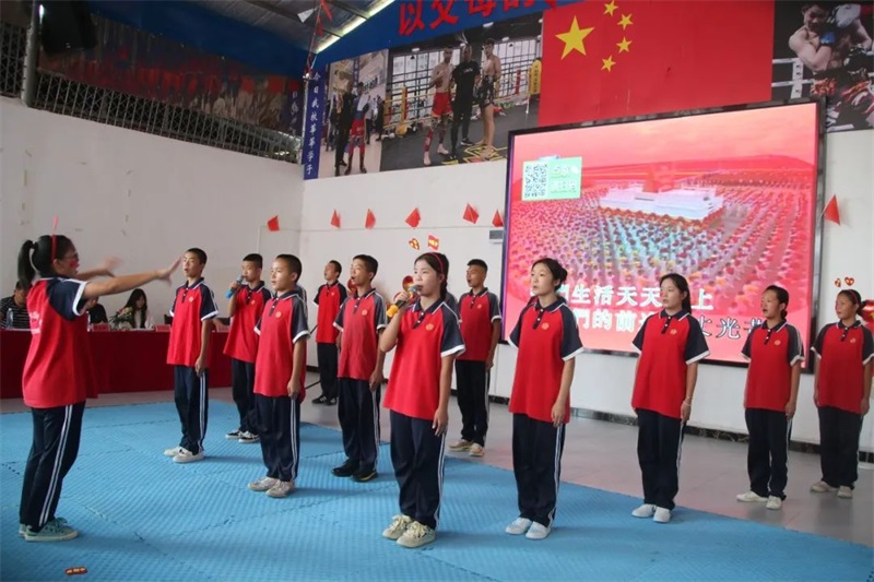 分別是:中專班《少年中國說》,初二班《我的中國心》初三2班《沒有共產黨,就沒有新中國》初小初一班《少年中國說》初三1班《我和我的祖國》