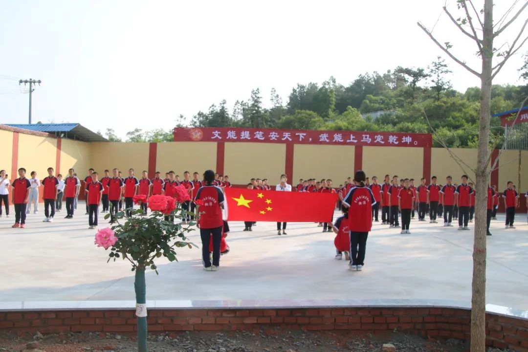 在升旗儀式的最后,全體同學紛紛舉起右手,對著國旗進行莊嚴的宣誓。那堅定的誓言如同一股強大的力量,匯聚在校園的上空。